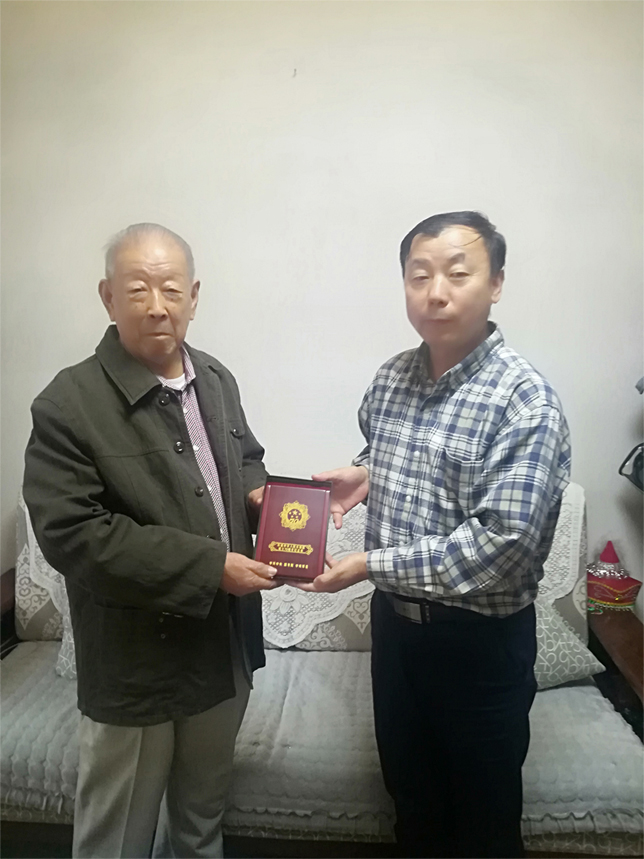 张新恩书记代表材料所党委领导,向姜同臣同志颁发了庆祝中华人民共和国成立70周年纪念章,并按通知精神发放了慰问金。随后,张新恩书记仔细询问了姜同臣同志的身体思想状况和家庭情况等,并向老同志传达了研究所深入学习宣传贯彻习近平新时代中国特色社会主义思想和党的十九大精神的行动部署。张新恩书记结合中央决策部署、省委指示精神、学校以及所党委的工作安排,和老同志深入的进行了交流,引导老同志增强“四个意识”,坚定“四个自信”,做到“两个维护”,自觉在思想上政治上行动上同以习近平同志为核心的党中央保持高度一致,做好老同志的榜样模范作用。