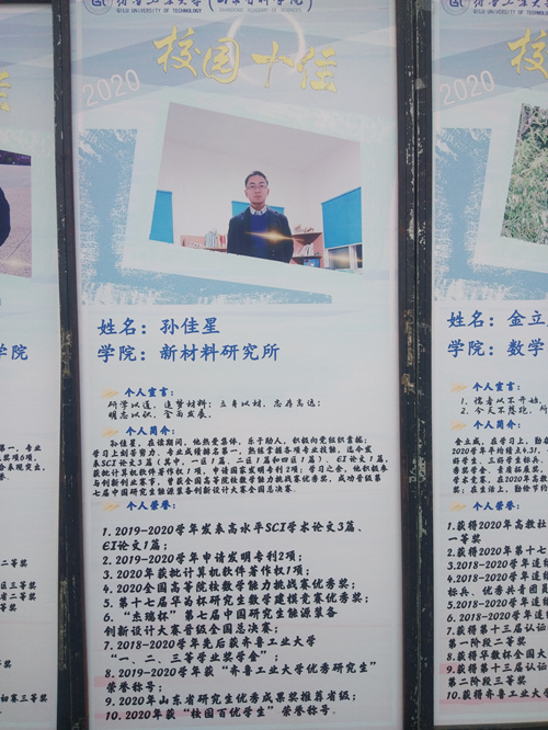 12月10日下午,2020年“校园十佳”学生评选复赛在长清校区举行,评选共分为前期微信投票和现场评选两部分进行,邀请专家组成评审组进行现场评分。研究所2018级研究生孙佳星进入复赛并最终获得“校园十佳”称号。