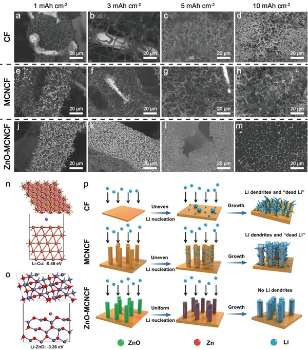 另一篇以“Atomic Layer Deposition Assisted Superassembly of Ultrathin ZnO Layer Decorated Hierarchical Cu Foam for Stable Lithium Metal Anode”为题发表在国际材料类顶级期刊《Energy Storage Materials》上。齐鲁工业大学(山东省科学院)为该工作的第一完成单位,2018级硕士研究生张润豪和李勇博士为第一作者。研究表明,该复合金属锂负极与磷酸铁锂正极和高负载量的钴酸锂正极等直接装配为性能优异的锂离子全电池。其磷酸铁锂电池可在2.0 C倍率下稳定循环1000圈仍有85.2%的容量保持,而高负载量的钴酸锂全电池同样具有优异的性能,在2.0 C的电流密度下循环1000圈,容量保持78.6%。该工作制备的复合金属锂负极实现无枝晶、无“死锂”的循环容貌,进而获得在对称电池和全电池体系中优异的电化学性能,提升了储能系统系统的安全性。
