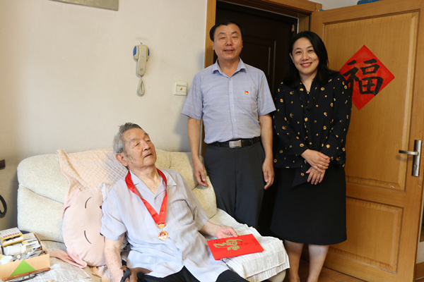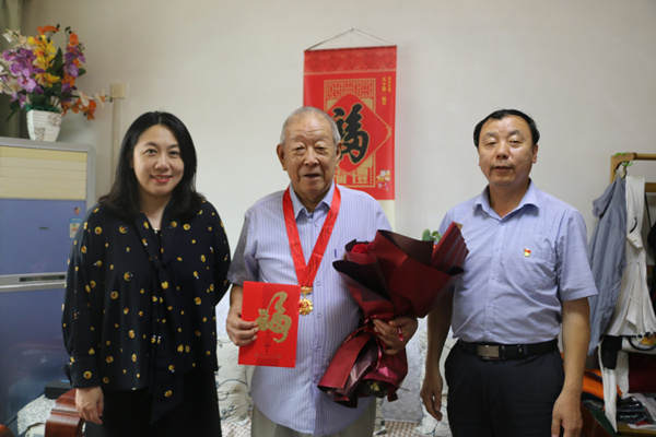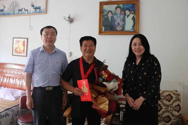 值建党100周年之际,7月1日,新材料所党委书记张新恩,党委委员、副所长(主持行政工作)李艳代表党委走访慰问获得“光荣在党50年”纪念章老党员。
