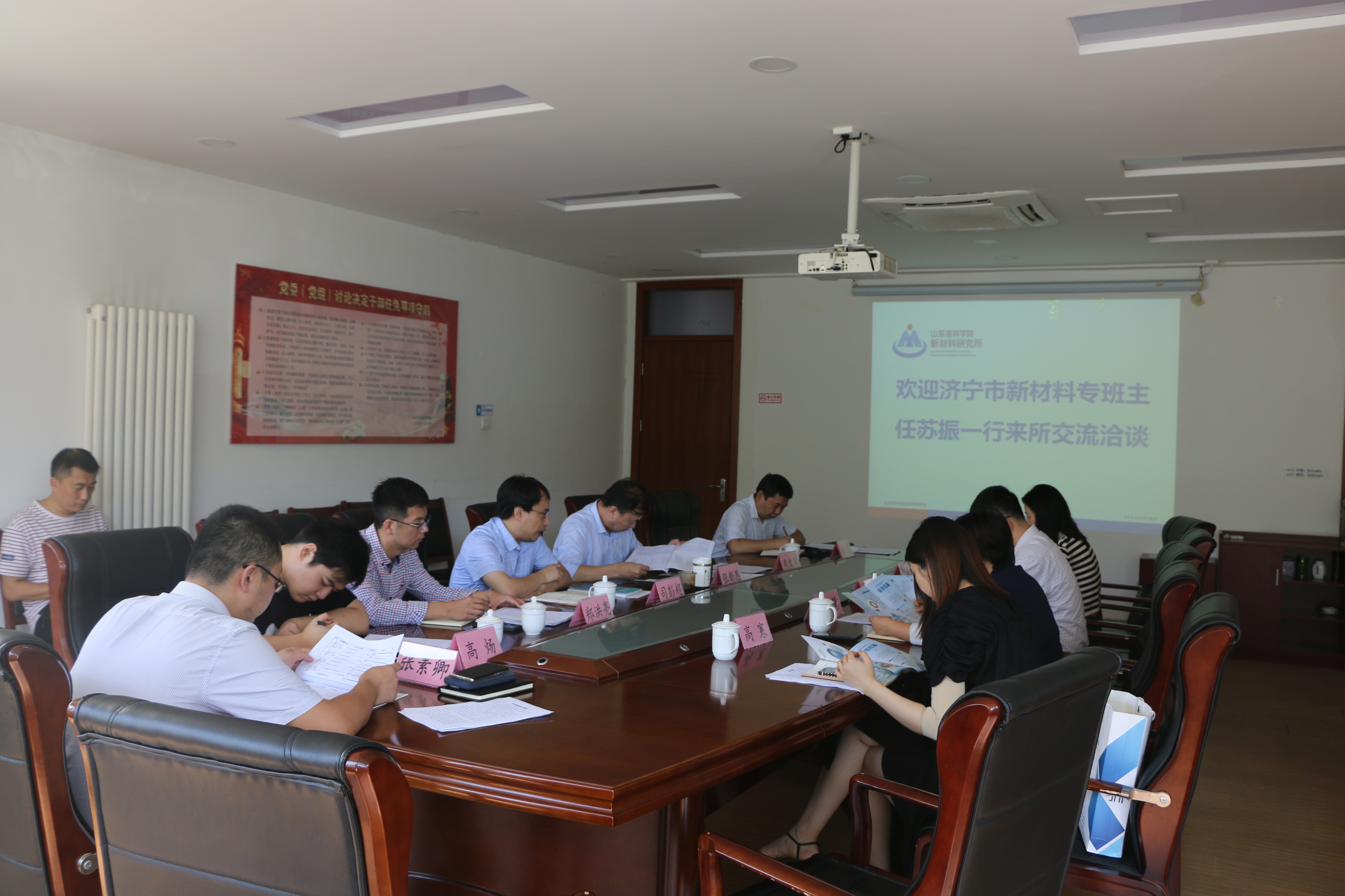 2021年9月9日,济宁市新材料产业专班主任、市科技局副局长苏振,专班副主任、济宁市产业技术研究院院长助理王慧等一行4人到访新材料所,就深化院地科技合作和人才交流进行了座谈。山东省新材料产业协会有关人员,研究所党委书记张新恩、副所长周吉学、相关科室及创新团队科研骨干等人员参加了座谈。