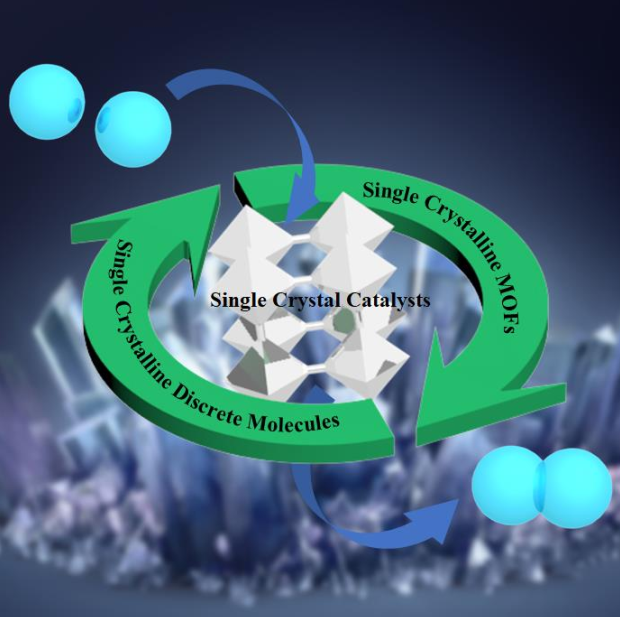 在各项现代科技中,催化技术始终占据着核心地位。据统计,目前人们在工作生活中使用到的各类化学品的90%都需要催化剂技术来合成。催化技术创造了全球超过30%的GDP。在当前所有的催化技术中,均相催化是最为常用的一种催化方式。这种催化方式主要包括过渡金属催化、酶催化以及今年刚刚获得诺贝尔化学奖的小分子催化等。这些催化方法的大规模应用极大的提高了化工、精细化学品等等行业的效率。然而,均相催化合成技术也有其难以克服的固有缺陷,例如,昂贵催化剂回收利用的困难性大大增加了催化合成的成本。另外催化剂的存在也增大了产物的纯化成本。最近几十年逐渐发展起来的异相催化技术可以使得反应物和产物以及催化剂处于不同的相中,有望解决以上两个问题,大大降低催化成本。在异相催化中,效率最高的无疑是晶体,尤其是单晶催化。这是由于传统的纳米粒子催化、表面催化以及多晶催化均限制了异相催化剂中催化位点的密度和载量。而单晶拥有固有的周期性孔道,为催化反应的发生提供了各向异性的场所。同时各向异性的环境也为反应的发生提供了额外的选择性。因此,大力发展单晶异相催化技术对于未来进一步降低催化技术的成本具有十分重大的意义。功能晶体团队研究人员在《Chemistry-An Asian Journal》上以期刊封面(Cover Article)的形式发表了题为“Catalysis in Single Crystalline Materials: From Discrete Molecules to Metal-Organic Frameworks”的文章,综述了近几年该领域的发展情况。其中主要包括独立小分子单晶中的催化以及金属有机框架(MOFs)晶体中的催化。这些发生在单晶中的反应相比传统的均相反应和异相反应具有更高的反应效率以及选择性,表明了单晶催化的优势以及巨大的应用潜力。文章第一作者及通讯作者为石强博士,王旭平教授及南京大学王乐勇教授为共同通讯作者。
