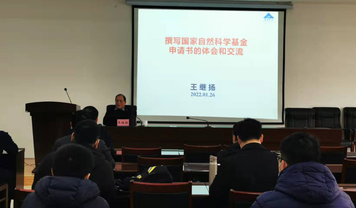 2022年1月26日,材料科学与工程学部邀请王继扬教授作了题为《撰写国家自然科学基金申请书的体会和交流》学术报告,报告会由学部主任郝霄鹏主持。