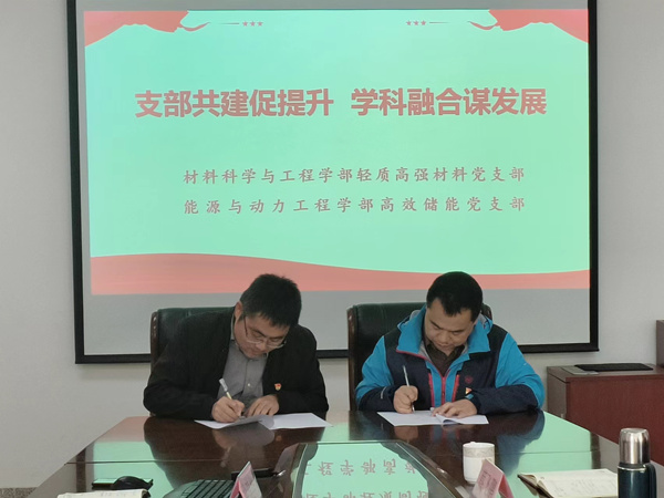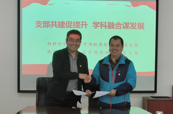 为深入贯彻落实校(院)《二级党委党建工作质量标准(试行)》(齐鲁工大鲁科院党字〔2022〕47号)和《党支部党建工作质量标准》(齐鲁工大鲁科院党字〔2022〕48号)精神,强化党建引领,推进党建与业务的深度融合,10月13日,材料科学与工程学部轻质高强材料党支部、能源与动力工程学部高效储能党支部开展结对共建活动,并签订共建协议书。