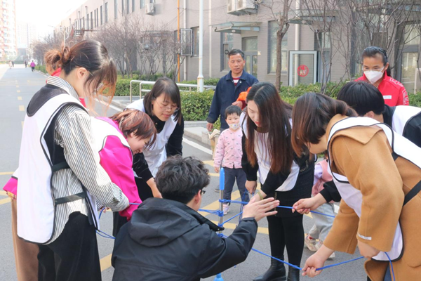 3月7日青年志愿者走进滨河社区,开展志愿服务活动,为社区提高素质拓展志愿服务。志愿者为参加拓展训练人员提高组织、引导和助教服务,帮助训练人员完成“一击即中”“合力建塔”“珠行万里”“同心鼓”“不倒森林”全部项目,充分调动志愿者参与社区服务的积极性和能动性。