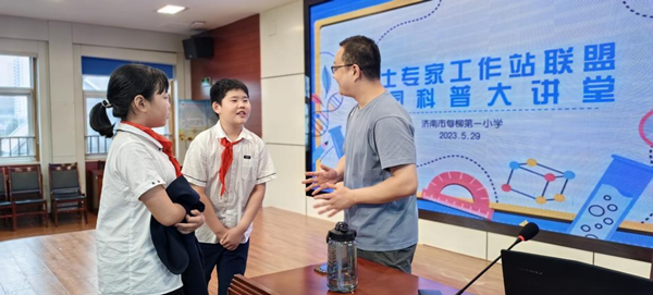 “院士专家工作站联盟校园大讲堂”活动是历下区科学技术协会与历下区教育和体育局联合开展的科普活动,也是材料学部“科技活动周”的一部分。学部将有更多的科技工作者参与到科普活动中,传播科学知识,让孩子们对科学感兴趣,开启孩子们的心扉,让他们充满对科学的好奇,从而激励他们树立科学理想,提高科学素质,努力成长为国家需要的科技栋梁之才。