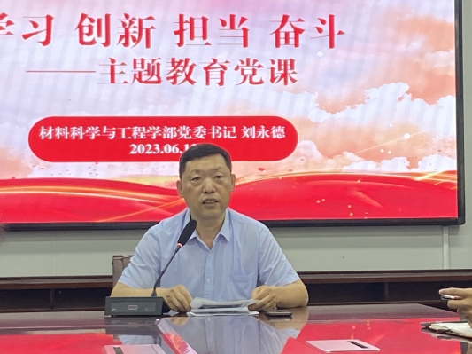 为深入开展学习贯彻习近平新时代中国特色社会主义思想主题教育,以真学真用、真抓实干的具体行动,推动主题教育落实到位。6月13日下午,材料科学与工程学部党委书记刘永德在2号教学楼B204会议室作题为《学习 创新 担当 奋斗》的主题教育党课,学部全体毕业生党员到场聆听本次党课。