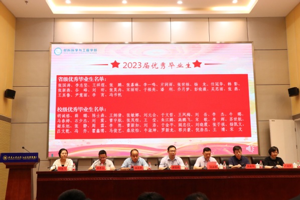 在毕业典礼结束后,材料科学与工程学部2023届毕业生学位授予仪式正式开始。材料学部常务副主任周吉学首先宣读了《关于授予2023届研究生毕业生硕士学位的决定》与《关于授予2023届本科毕业生学士学位的决定》。随后,材料科学与工程学部学位评定委员会委员依次为硕士、本科毕业生拨穗、颁发毕业证书,并合影留念。仪式最后,在校歌《追梦路上》的歌声中,学部领导老师们起立与2023届毕业生们挥手告别,材料科学与工程学部2023届毕业典礼暨学位授予仪式圆满结束。