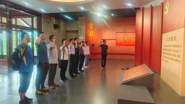 在山东原山艰苦创业教育基地党性体检馆,各位党员通过观看党性教育视频、学习先进人物事迹、重温入党誓词,锤炼党性,汇聚矢志不渝艰苦奋斗的精神力量。各位党员肃然站立,右拳高擎,郑重宣誓,重温入党时的思想激情和奋斗追求,回顾入党宣誓时的庄严承诺和坚定决心。